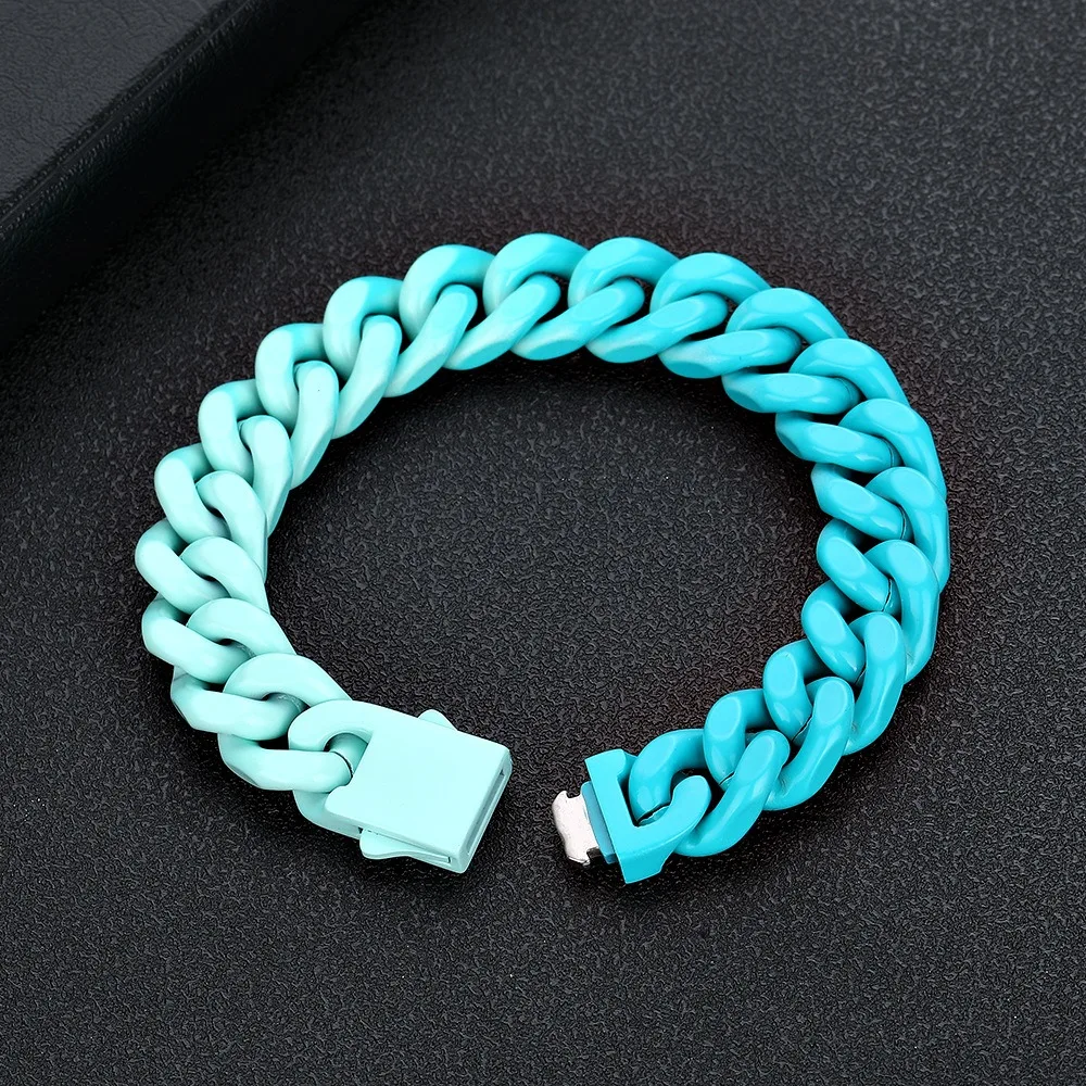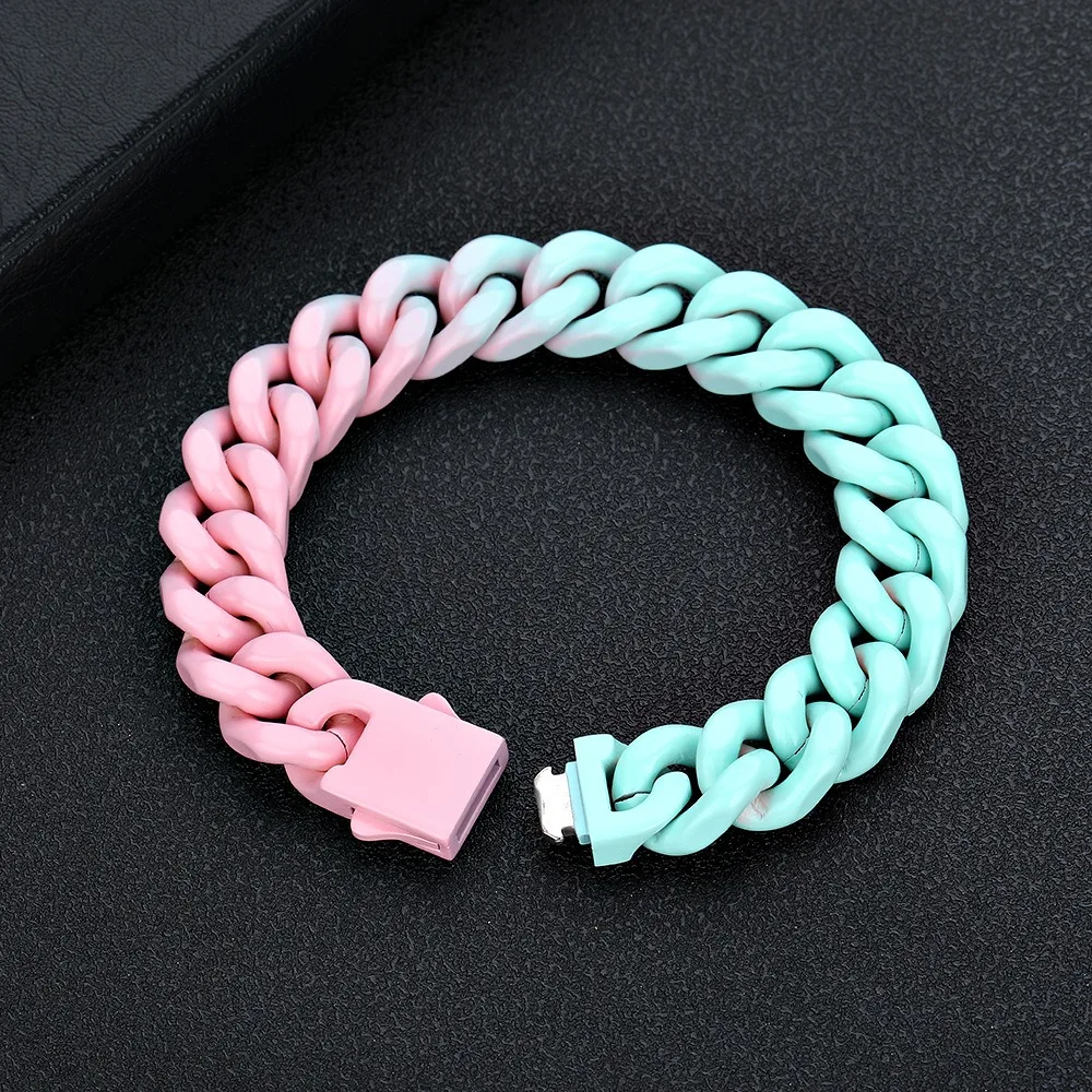 2022 New Design Creative Stainless Steel Colorful Gradient Cuban Bracelet Mens Jewelry
